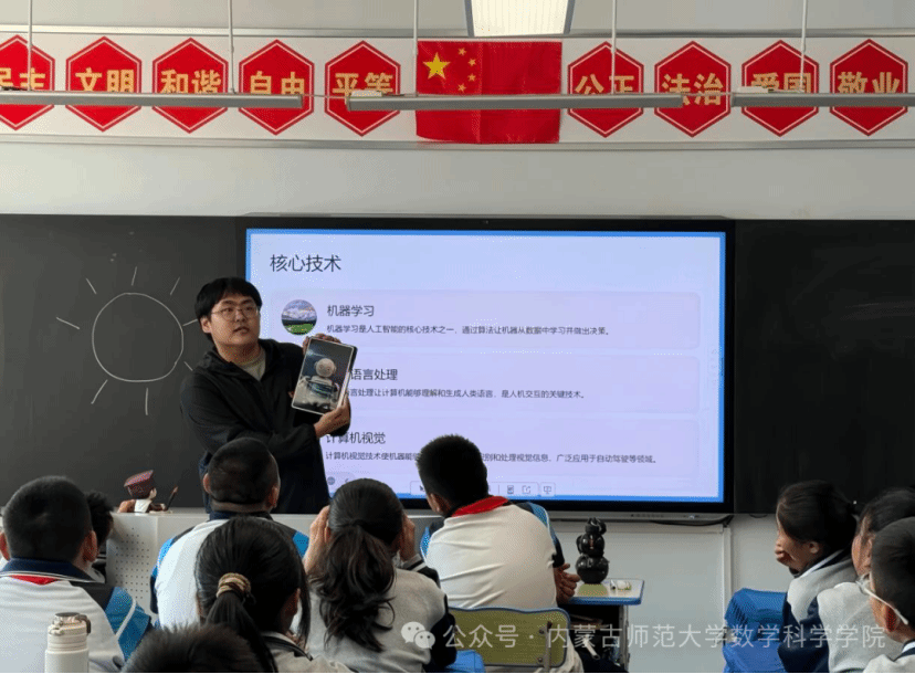 乌日乐始终牢记党员身份,认真学习党的创新理论,积极践行“铸牢中华民族共同体意识”,在思想、政治、行动上同党中央保持高度一致。他热心投身志愿服务,深入和林格尔县乳业开发区第一小学开展“数映北疆 科普筑梦”科普活动,运用专业特长讲解人工智能知识,相关事迹被《内蒙古电视台》等媒体报道。通过不断锤炼,乌日乐逐渐成长为一名有责任、敢担当、肯奉献的学生骨干,2024年他荣获“内蒙古师范大学优秀共产党员”称号,全校仅6名学生党员获此殊荣。