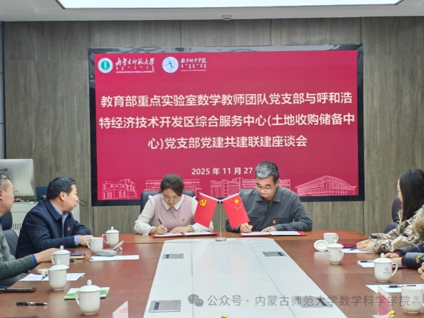 为深入贯彻落实新时代党的建设总要求,创新党建工作载体,近日,教育部重点实验室数学教师团队党支部与呼和浩特经济技术开发区综合服务中心(土地收购储备中心)党支部联合开展党建共建联建活动,旨在通过交流互鉴、资源共享,构建“优势互补、互相促进、共同提高”的党建工作新格局。