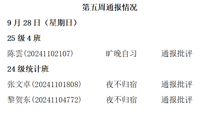 数学科学学院2025——2026年度第一学期第五周通报情况