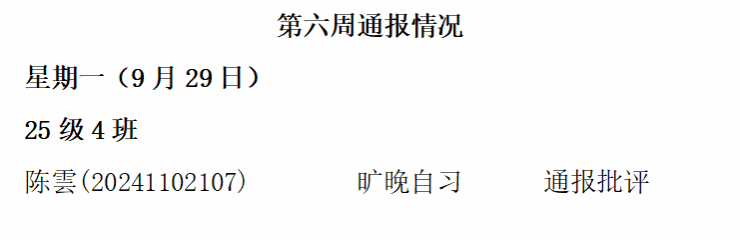 数学科学学院2025——2026年度第一学期第六周通报情况