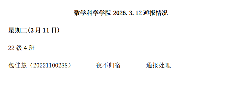 数学科学学院2025-2026年度第二学期第二周通报情况