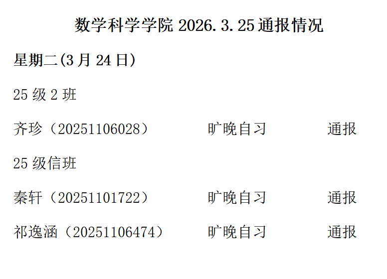 数学科学学院2025-2026年度第二学期第四周通报情况
