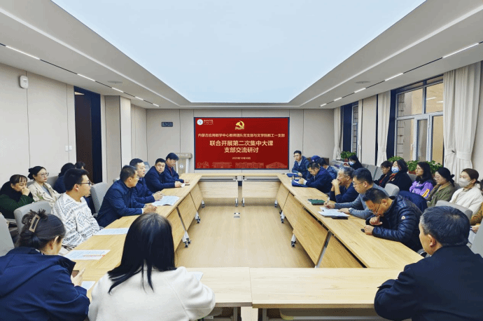 为深入学习贯彻习近平新时代中国特色社会主义思想,进一步加强党员队伍建设,提升党员政治素养和业务能力,10月30日下午,数学科学学院内蒙古应用数学中心教师团队党支部与文学院教工第一党支部围绕“深入学习贯彻习近平总书记关于教育的重要论述,以教育强国建设支撑引领中国式现代化”这一主题,联合举办全体党员第二次集中大课交流研讨会。两学院教师党支部全体党员参加交流研讨,会议由数学科学学院党委书记张伟主持,自治区教育厅组织人事处钱超时主任到会指导并讲话。