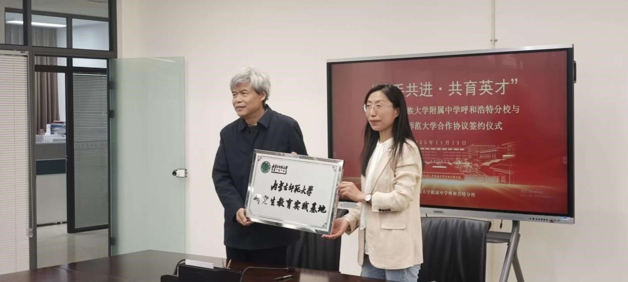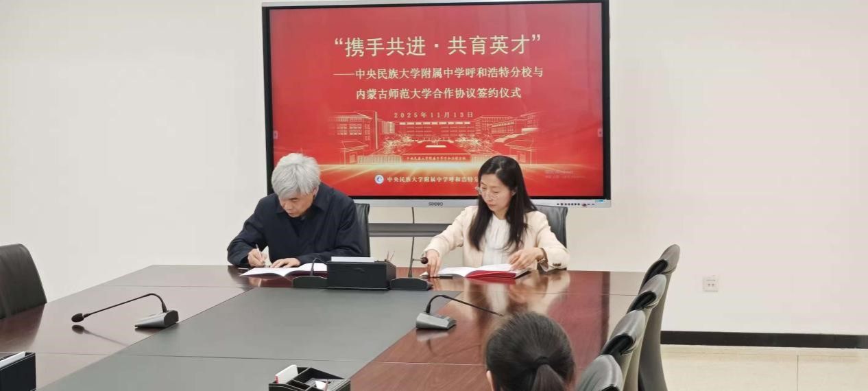 11月13日,内蒙古师范大学数学科学学院与中央民族大学附属中学(以下简称“中央民大附中”)《研究生教育实践基地》签约仪式在中央民大附中举行。内蒙古师范大学数学科学学院副院长包霞、学科教学(数学)学位点负责人李春兰、研究生院楠玎和民大附中校长王建学、常务副书记范广英、副校长张永艳等双方领导及骨干教师代表出席仪式,共同见证这一深化教育协同合作的时刻。