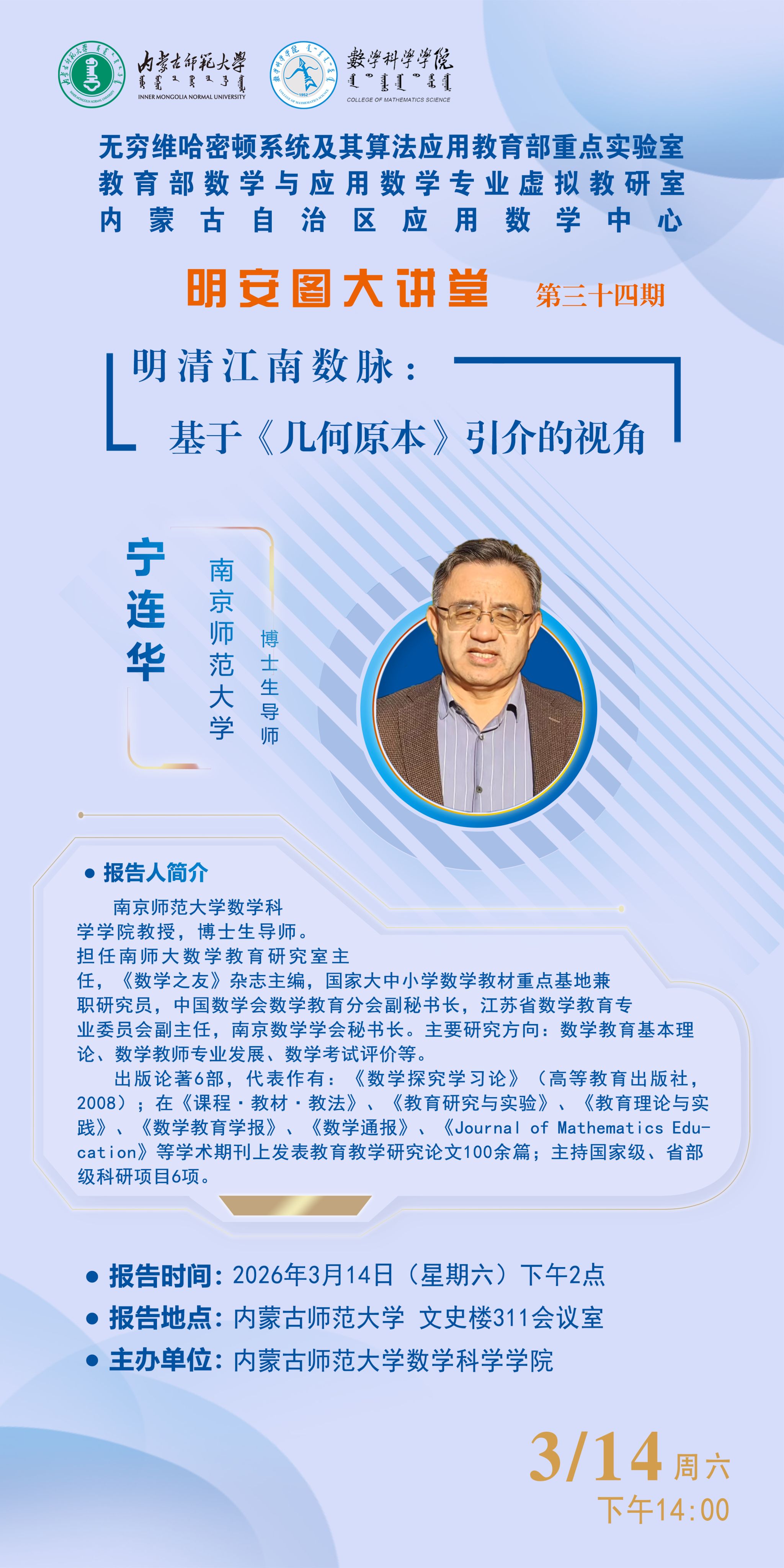 明安图大讲堂·预告(第三十五期) | 新世纪以来我国中小学 数学教材研究热点、演进与展望