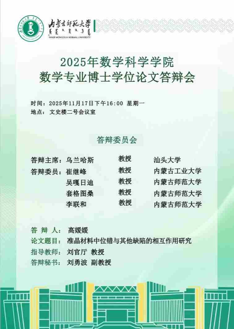2025年数学科学学院数学专业博士学位论文答辩会(二)