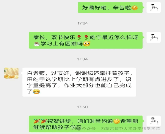 同时,学院2025年暑期“三下乡”社会实践团队成员秉承长效支教理念,面向各自结对的四子王旗实验小学学生,持续开展线上课业帮扶和作业辅导,为乡村学子提供长效学习支持。“线上+线下”长效帮扶正持续发挥效力,助力教育温暖传递。