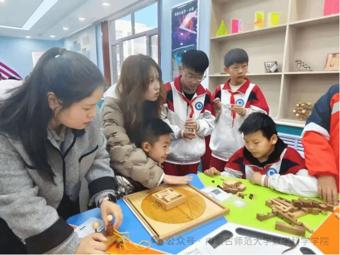 为夯实基础学科建设,弘扬数学文化魅力,激发青少年数学学习兴趣,3月18日上午,我院顺利开展“品数学之美·探学科之趣”主题科普活动,在互动体验环节,来自附属学校的小朋友们满怀好奇与热情,走进明安图数学探索中心参观学习,并参与趣味数学实践体验。2025级学科教学(数学)专业硕士研究生全程带领、悉心指导,用生动有趣的方式讲解数学知识、引导实践操作,让小朋友们在动手动脑中感受数学的奇妙与乐趣。