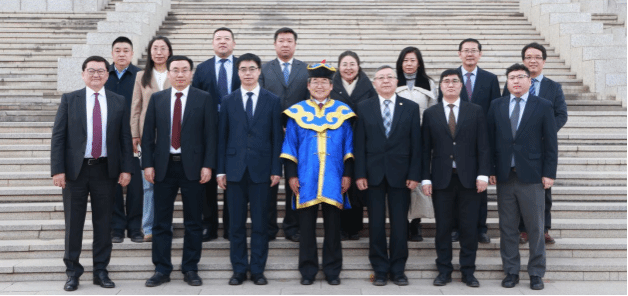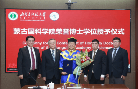 1月13日,由内蒙古师范大学主办、数学科学学院承办的中蒙应用数学交流研讨会暨蒙古国科学院荣誉博士学位授予仪式在内蒙古师范大学赛罕校区举行。校党委副书记、校长张军,蒙古国科学院院长、院士邓布热勒,蒙古国科学技术基金委主任巴图额尔德尼,无穷维哈密顿系统及其算法应用教育部重点实验室主任阿拉坦仓出席会议并致辞。蒙古国科学院院士恩赫巴图、办公室主任巴雅尔巴特尔,数学与数字技术研究所所长蒙克额尔德尼,内蒙古自治区科技厅外国专家局(科技合作处)局(处)长佟永兴,学校相关职能部门负责人、数学科学学院班子成员以及师生代表参加。会议由校党委委员、副校长公茂果主持。