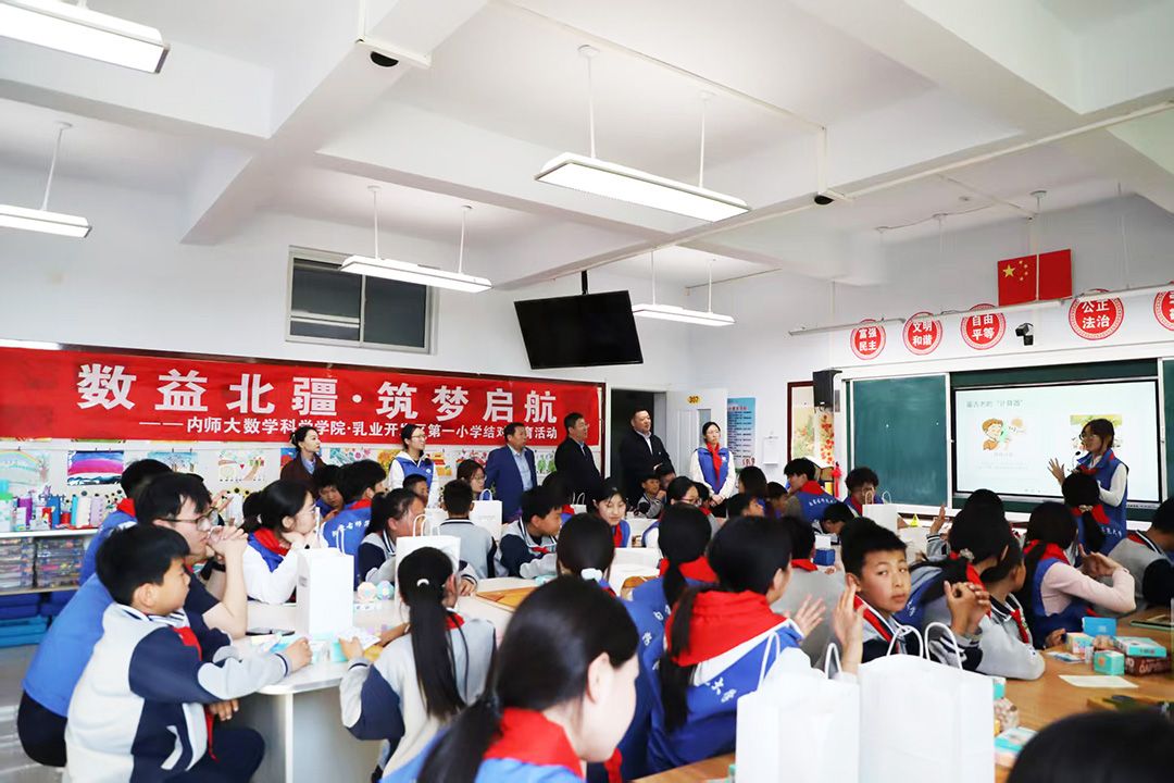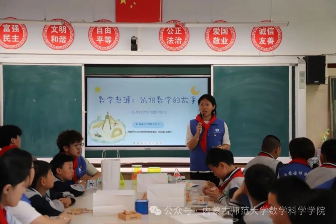 揭牌仪式后,科普互动活动正式开启。数学科学学院“数益北疆”大学生志愿者团队带来趣味数学体验、科学小实验等内容,用生动有趣的形式激发孩子们的科学兴趣与探索精神,让数学智慧与科学素养在互动中生根发芽。