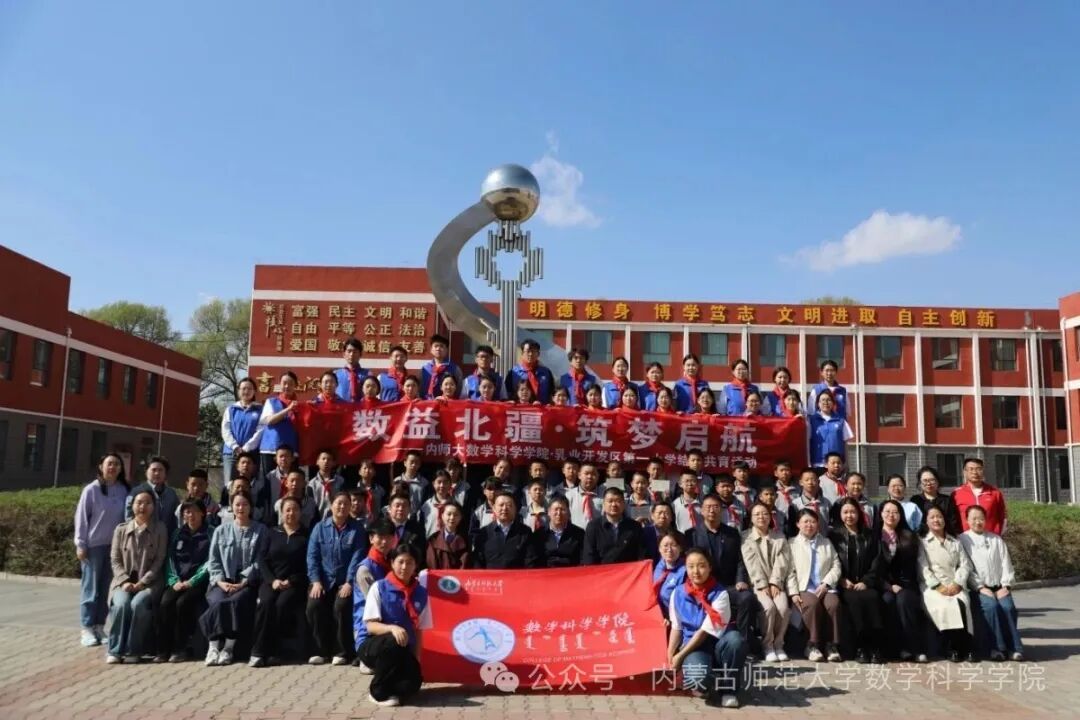 在热烈的掌声中,乳业开发区第一小学书记、校长贾杰民与数学科学学院党委书记张伟共同为大学生社会实践基地揭牌,标志着校地合作迈入新阶段。揭牌后,全体与会人员合影留念。