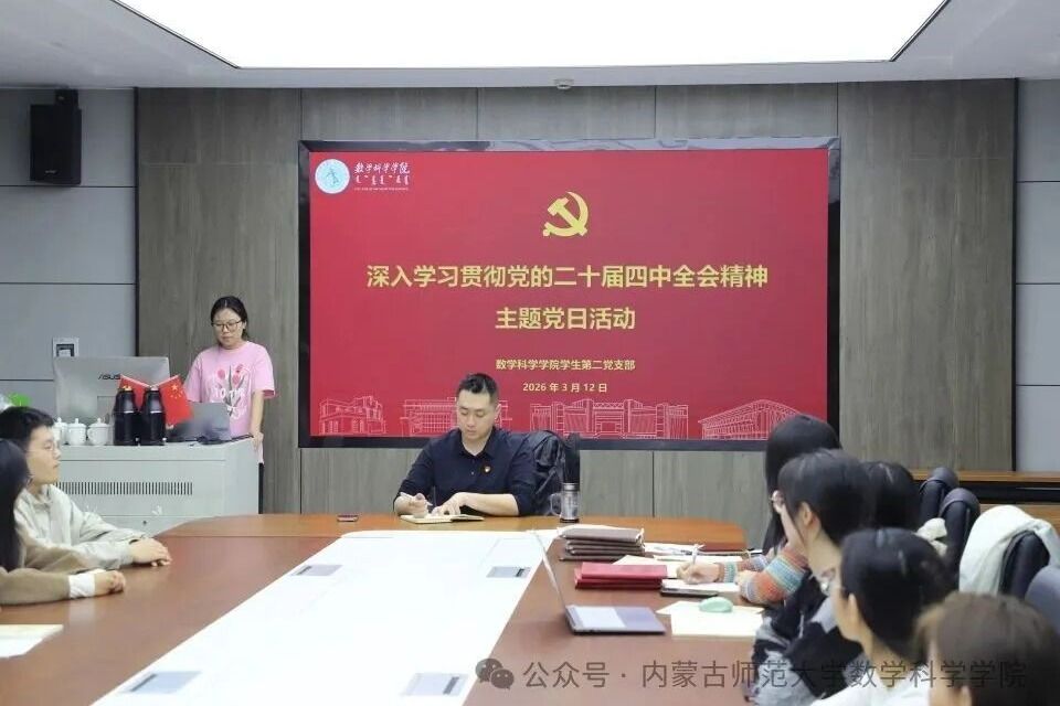 为深入学习贯彻党的二十届四中全会精神,切实把全院党员思想和行动统一到党中央决策部署上来,近日,内蒙古师范大学数学科学学院各党支部相继开展二十届四中全会精神专题学习会,全体党员参加学习,各党支部书记主持会议。