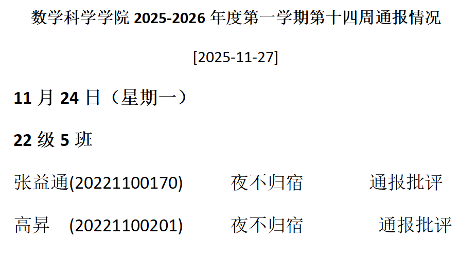 数学科学学院2025-2026年度第一学期第十四周通报情况